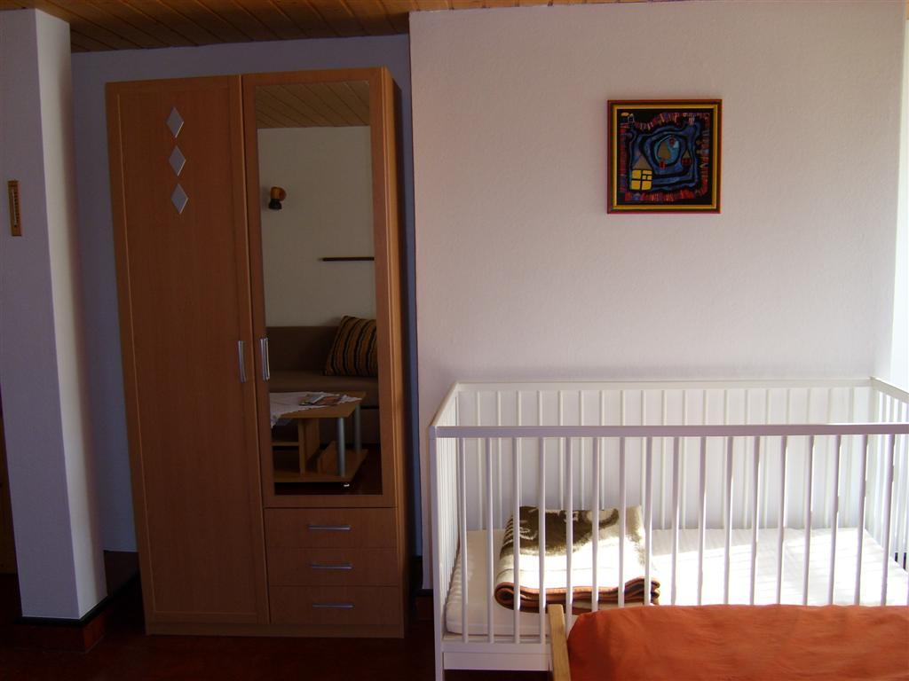 Wohnung Ferienwohnung für 2-4 Personen (60qm), 2 Schlafzimmer, jeweils mit Wohnbereich. Kinderbett vorhanden, kleine seperate Küche, Bad mit Dusche/WC. WC Extra, Tischtennisplatte, Gartenbenutzung, Garage für Fahrräder